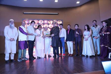 RJ Aarti Sajwan anchored the program. Singers Naresh and Sagar Acharya sang. Vishwajeet Soni thanked Dr. Krishna Chouhan for producing two albums with his son, Vinayak Soni.