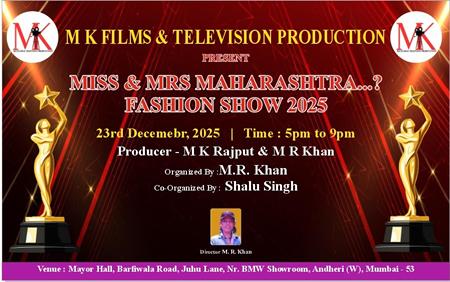 मुंबई के अंधेरी वेस्ट में एम के फिल्म एंड टेलीविजन प्रोडक्शन के बैनर तले आयोजित “मिस महाराष्ट्र…? फैशन शो 2025” का आयोजन बेहद भव्य और यादगार रहा!